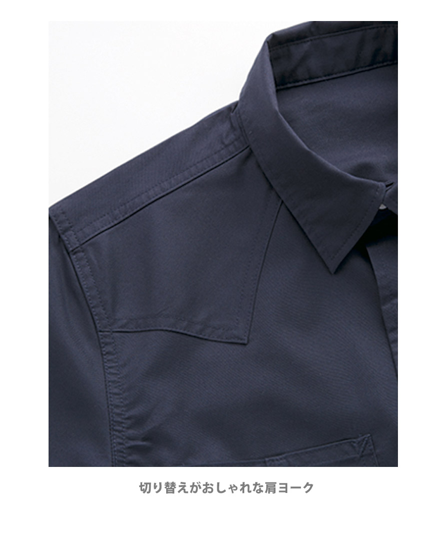 Leeの洗練されたウエスタンテイストを取り入れたユニセックス七分袖シャツ〈LCS49002〉。前後のショルダーヨークが印象的なデザインで、さりげなくおしゃれなワークスタイルを演出します。オールシーズン着用できる七分袖仕様で、動きやすく清潔感をキープ。カフェやベーカリー、レストランなどサービス業のユニフォームとして人気の高い一枚です。男女兼用のシルエットで、スタッフユニフォームとしてもチームウェアとしても幅広く活躍します。