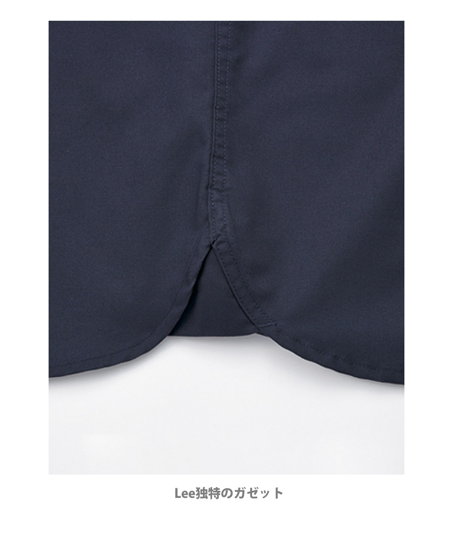 素材は通気性と耐久性に優れたオックスフォードでシワになりにくく、洗濯後も型崩れしにくいイージーケア素材。裾にはLee独特のガゼット(補強布)を採用し、長時間の着用にも耐える丈夫な仕立て。普段使いにも馴染むシンプルなワークシャツとして、デニムやチノパンとの相性も抜群です。日常使いや、オフィスカジュアル向けウェアとしてはもちろん、ホテルや観光施設、カフェやベーカリー、美容院やサロンなどの、様々なユニフォームとしても大変おすすめ!