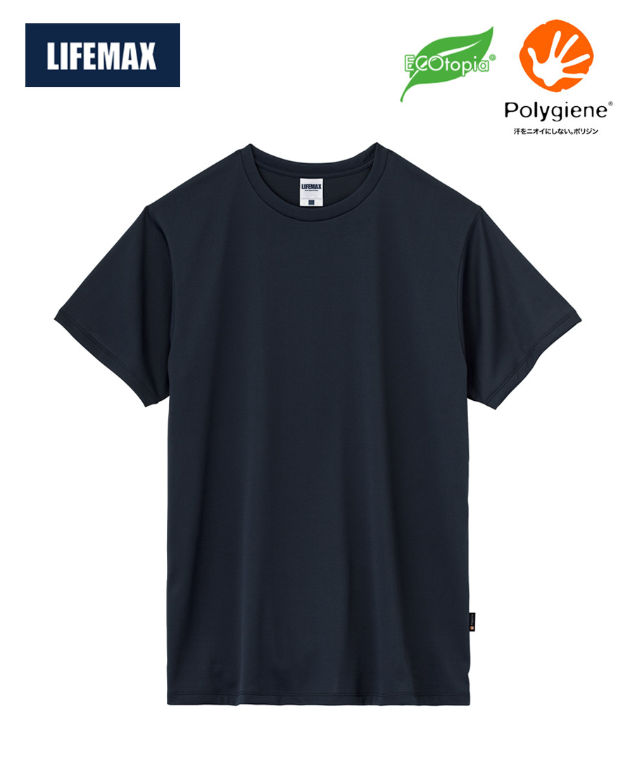 汗をニオイにしない!銀イオン(Ag)の抗菌防臭加工を施した 一歩先ゆく多機能Tシャツ。東レの新しいリサイクル繊維を使用しており SDGsにも貢献してくれます。天然の銀イオンにより微生物やバクテリアの繁殖を抑制する、抗菌・防臭加工技術の「ポリジン」素材は、汗のにおいや部屋干し臭の元となる菌の成長を元から抑制。