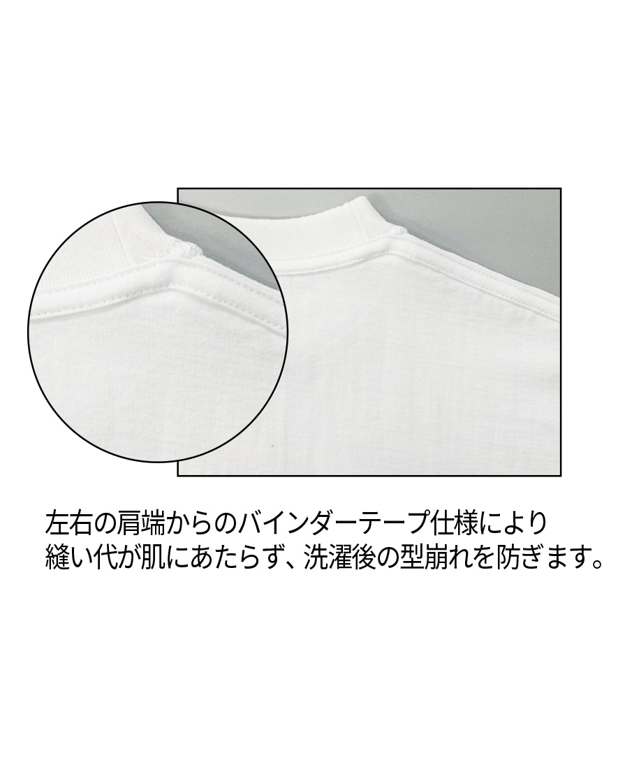 素材 :綿100% 18/- 度詰め天竺注意事項: ホワイトは綿糸縫製目付 :225g/㎡(6.6oz)縫製仕様: 衿2本針、丸胴