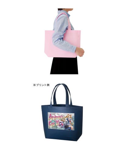 さらに、オリジナルプリントに最適な大きめ印刷範囲を確保!企業ロゴやブランド名を大胆にプリントすれば、持ち歩きながらのPR効果も抜群。雑貨屋さんやアパレルショップのオリジナルグッズにも人気のアイテムです。選べる7色展開で、企業やブランドイメージに合わせたカラー選びも可能。